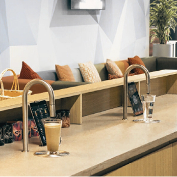 Grâce à son système ultra-intégré, 99% de la machine est encastrée sous le plan de travail, laissant visible uniquement un robinet en col de cygne. Résultat : un rendu visuel épuré, sans nuisance sonore, qui s’intègre parfaitement à tous types d’aménagements.